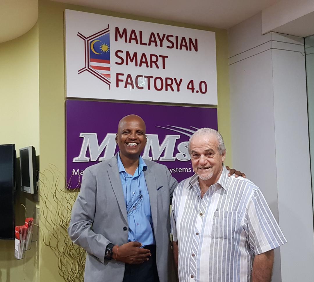Malaysian Smart Factory Visit. Mr. R.M Ravichandar (Penang ICSMEE Chapter Chairman) visits Selangor Human Resource Development Centre) collaboration with Swis Smart Factory in Shah Alam. Mr.Walter Hogger in the picture is from SHRDC. He is from Switzerland.