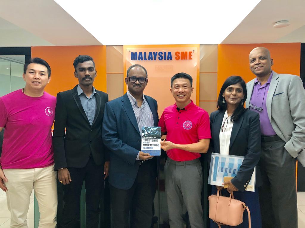 Mr.Wayne Lim (Group CEO of MALAYSIA SME PAPER) receiving book from Dr.Azlan Nithia (Founder of LeanSmart) Mr.Gan (President Elect ICSMEE MALAYSIA), Ms Mohana (ICSMEE Council Member), R.M.Ravichandar (ICSMEE Penang Chapter) Mr.Theso (Business Executive LeanSmart)